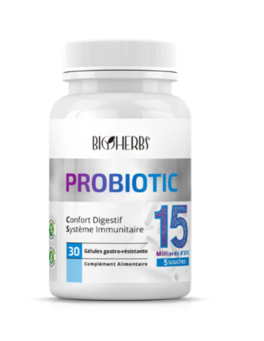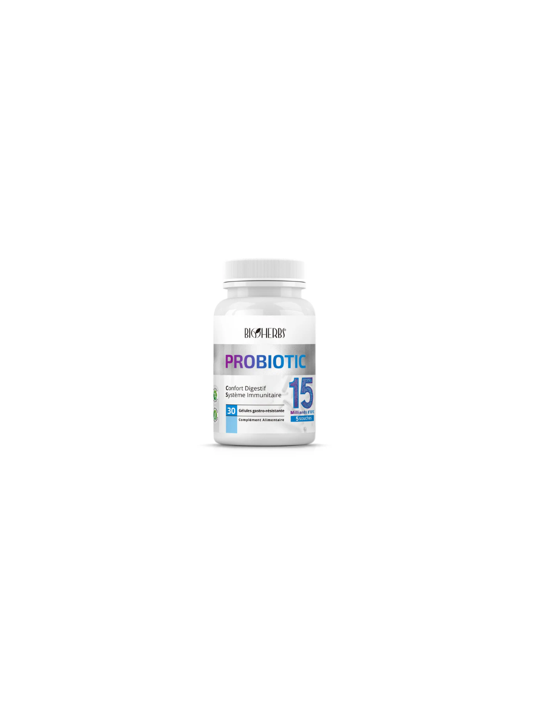Mélange de 5 souches de probiotiques dosé à 15 Milliards UFC :