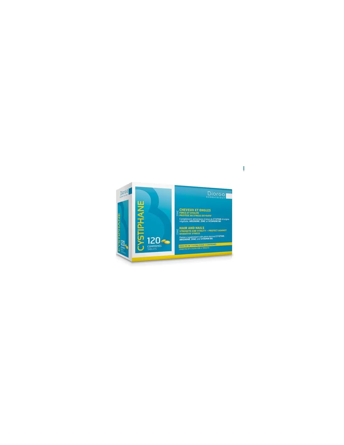 L-Cystine – Agent d’enrobage : Cellulose microcristalline – Antiagglomérant : Talc – Agent d’enrobage: Hydroxypropylméthylcellulose – Sulfate de zinc –Affermissant : Carboxyméthyl cellulose sodique – Antiagglomérant : Stéarate de magnésium – Arginine – Vitamine B6 – Agent d’enrobage: Acide stéarique, Titanium dioxide, Cire de Carnauba – Colorant : Riboflavine.