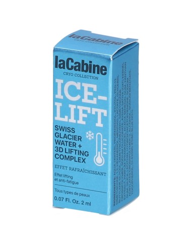 LaCabine Ice-Lift 1 Ampoule est une ampoule pour le visage qui permet de rafraîchir instantanément la peau. Elle contient de l’eau des glaciers suisse et un complexe à effet lifting 3D. Inspirée de la cryothérapie, cette ampoule exploite tous les bienfaits de l’effet froid pour une fraîcheur instantanée et une peau plus lisse, plus jeune et reposée.
