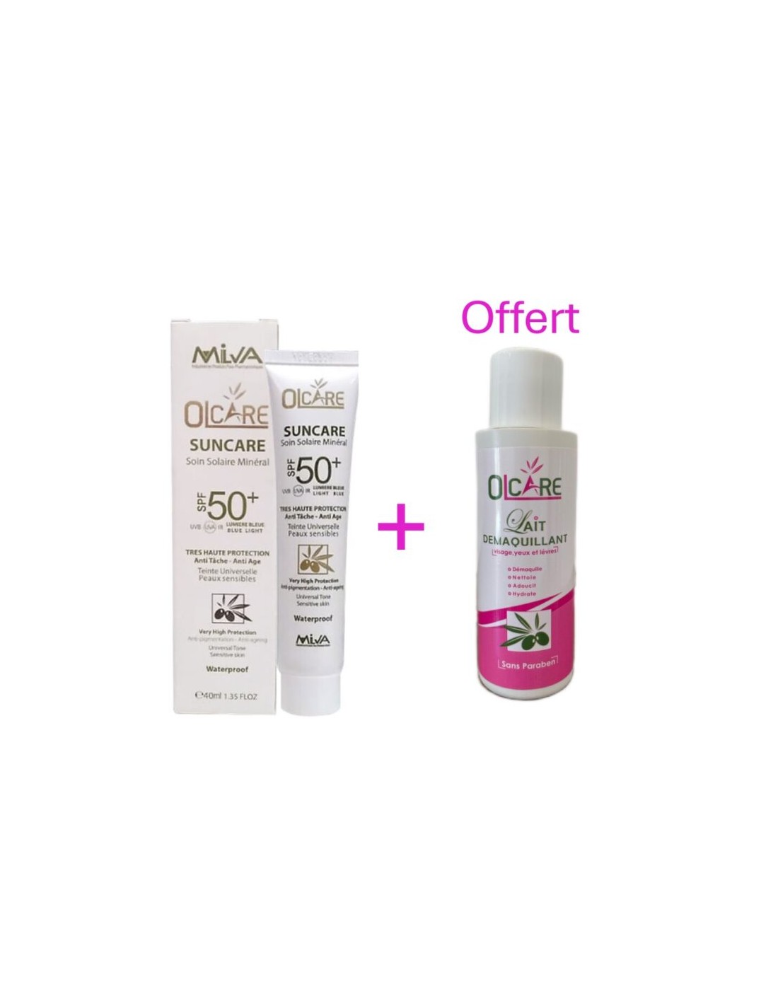 Olcare Ecran Solaire Minéral Teinté Anti Tâche Anti Age SPF50+ 40ml + Lait Démaquillant 100ml