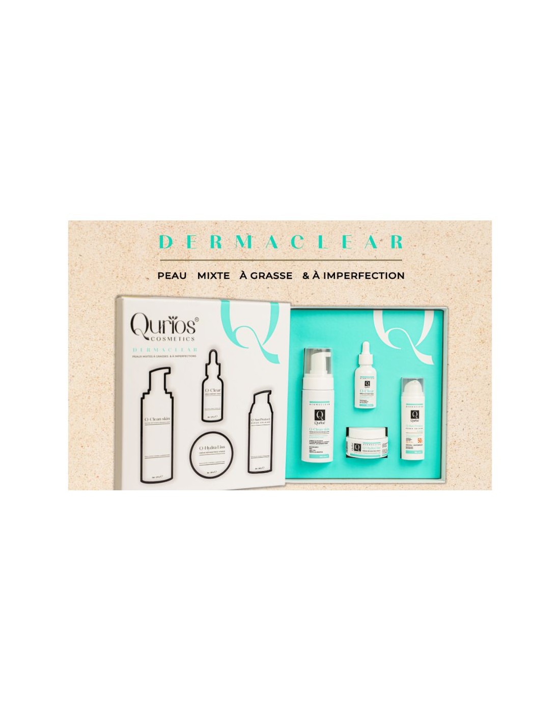 QURIOS Coffret Dermaclear (Ecran Invisible +Sérum+Crème Visage +Mousse)Peau mixte à grasse
