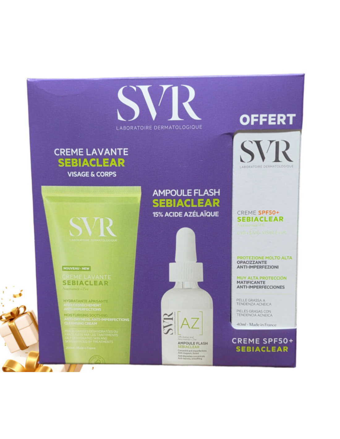 SVR Sebiaclear Coffret (Crème Lavante + Ampoule AZ) + Crème Solaire Matifiante SPF50 OFFERTE