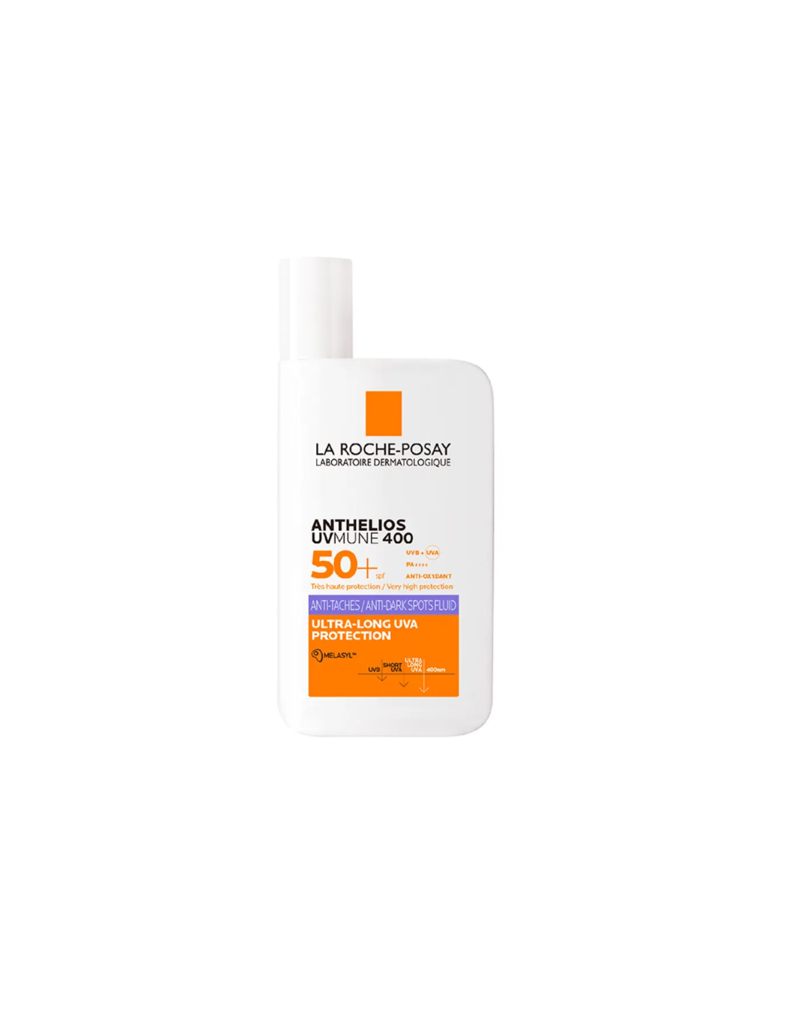 La Roche-Posay Anthelios UVmune 400 Fluide Anti-Taches SPF 50+ Sans Parfum 50 ml est un produit qui filtre les rayons UV et convient à tous les types de peaux.