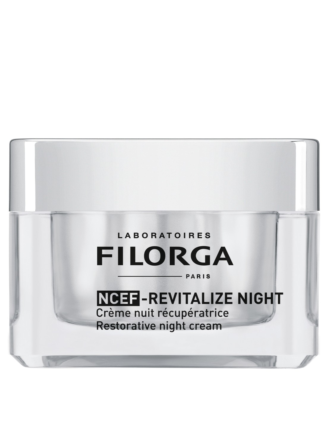 Réveillez-vous avec une peau plus lisse, plus éclatante et revitalisée grâce à NCEF-Revitalize Night de FILORGA. Inspirée par les injections revitalisantes en médecine esthétique, cette crème de nuit anti-âge agit du jour au lendemain pour soutenir le processus de renouvellement de la peau et réduire les signes de fatigue, d’opacité et de teint inégal. La formule combine une forte concentration de NCEF et un triple complexe actif : les peptides anti-rides (matricines) renforcent les mécanismes naturels de réparation de la peau, tandis que Tephrosia purpurea (une espèce de plante de pois) – reconnue pour sa capacité à réguler l’activité hormonale liée au stress – protège contre le stress oxydatif et donne à la peau un éclat renouvelé. La niacinamide (2 %) aide à réduire les rougeurs et les taches de vieillesse, à renforcer la barrière cutanée et à uniformiser le teint. La texture fraîche et enveloppante du gel absorbe rapidement, offrant confort et hydratation nocturne. Adapté à tous les types de peau.