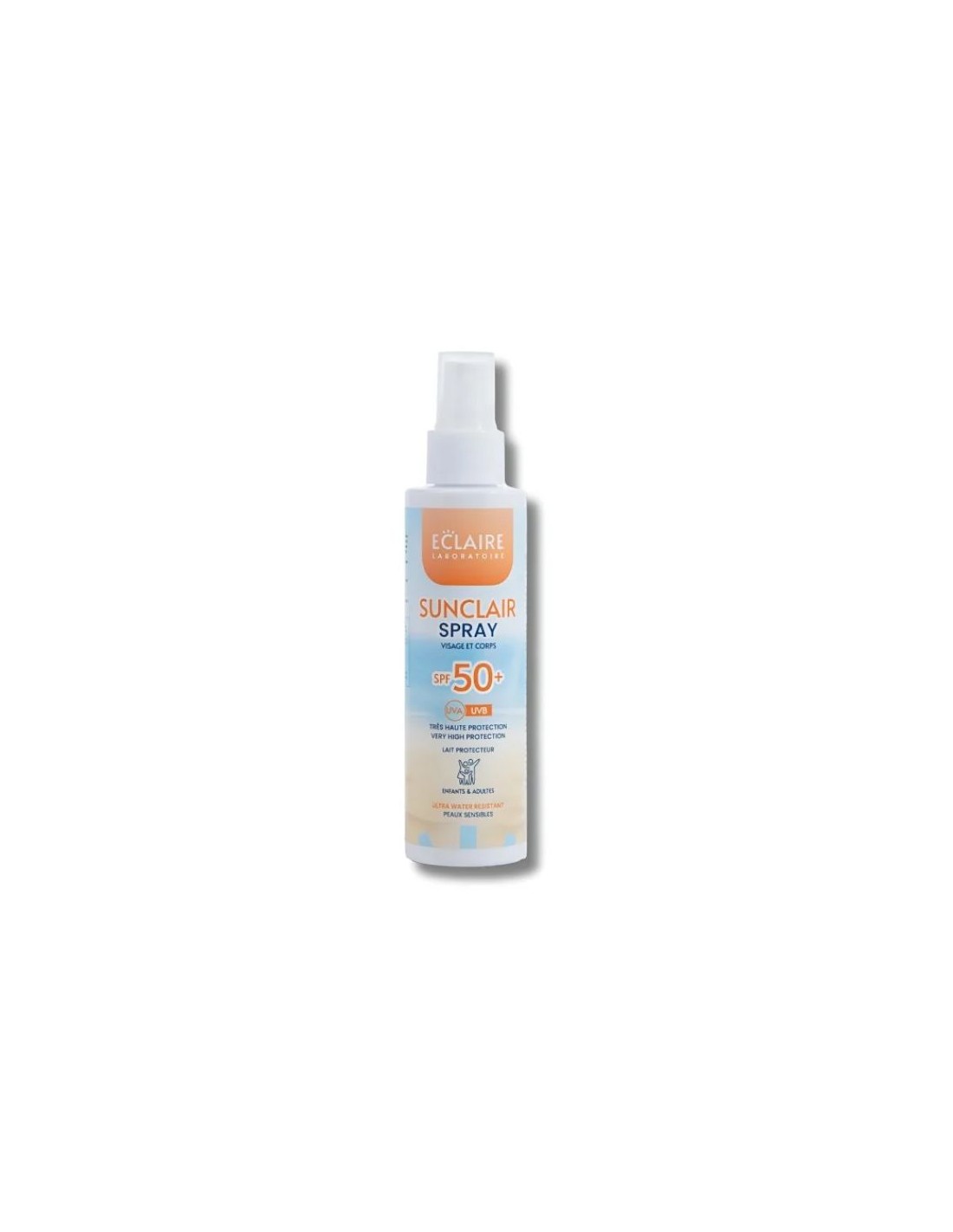 ECLAIRE Sunclair Spray Solaire SPF 50+ 150 ml est une protection solaire haute performance adaptée aux enfants et aux adultes. Sa formule résistante à l’eau protège efficacement la peau des rayons UVA et UVB tout en préservant son hydratation et sa douceur.