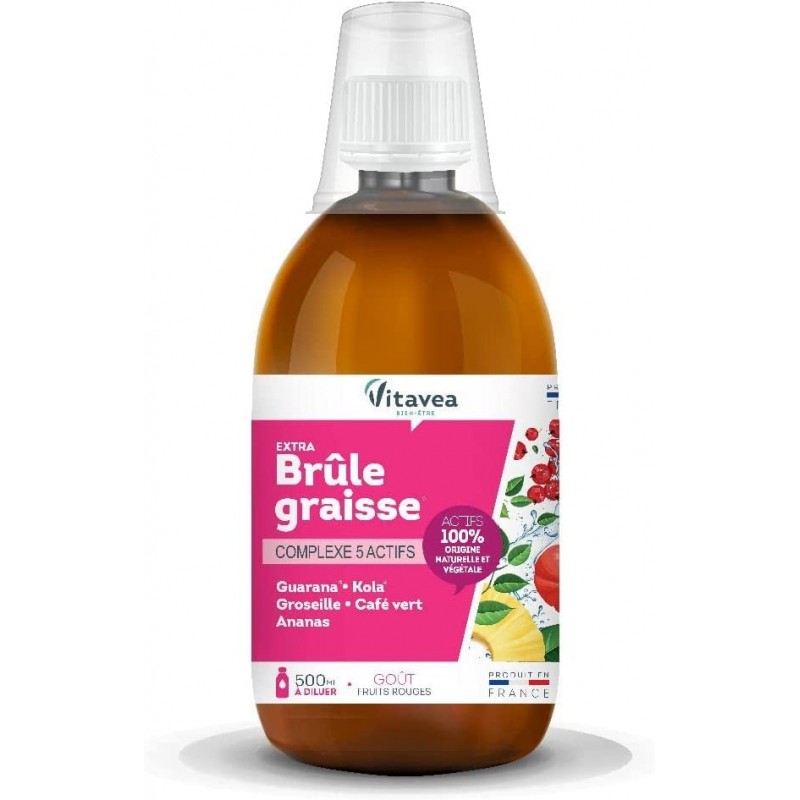 - COMPLEMENT ALIMENTAIRE BRÛLEUR DE GRAISSE PUISSANT : Notre boisson Extra Brûle Graisse Vitavea est votre alliée pour brûler et déstocker les graisses de réserve et combattre les kilos superflus. Sa formule est un concentré de 5 actifs star de la minceur et la perte de poids que sont le guarana, le café vert, l'ananas, le kola et la groseille. Une formule choc à boire au bon goût fruits rouges
