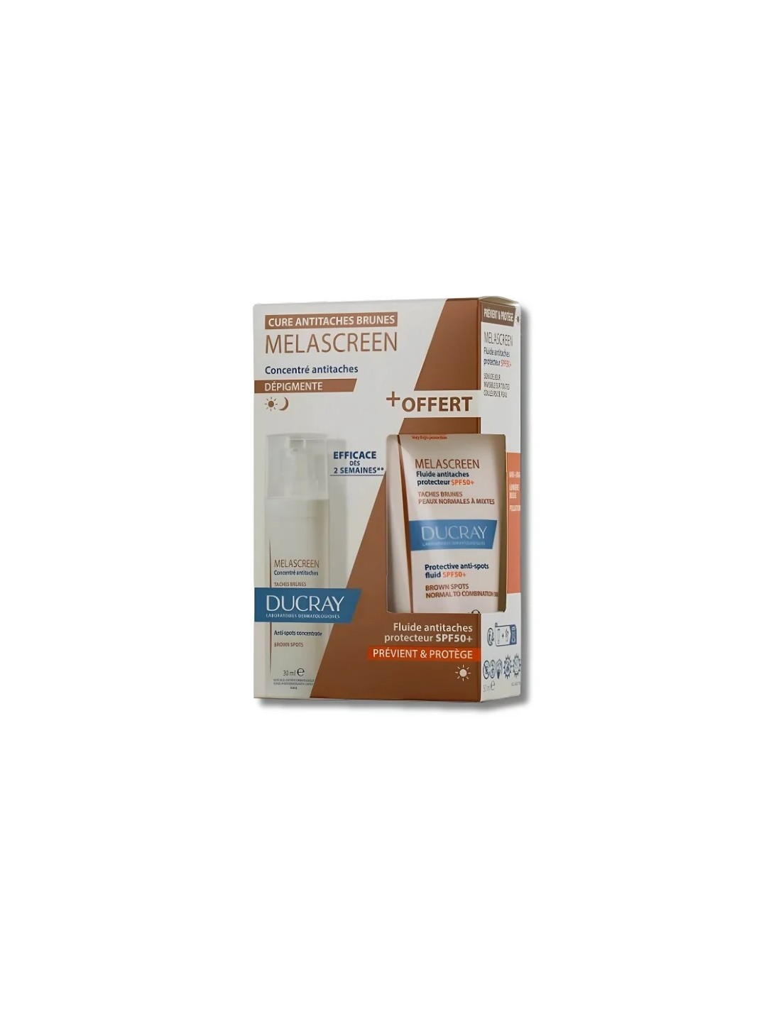 Inclus dans ce pack : le Fluide Solaire SPF50+, sans parfum, qui protège efficacement contre les UVA/UVB, prévient l'apparition de nouvelles taches et ralentit le vieillissement cutané. Les deux soins conviennent à tous types de peaux, même les plus sensibles, atopiques ou sujettes à l'eczéma.
