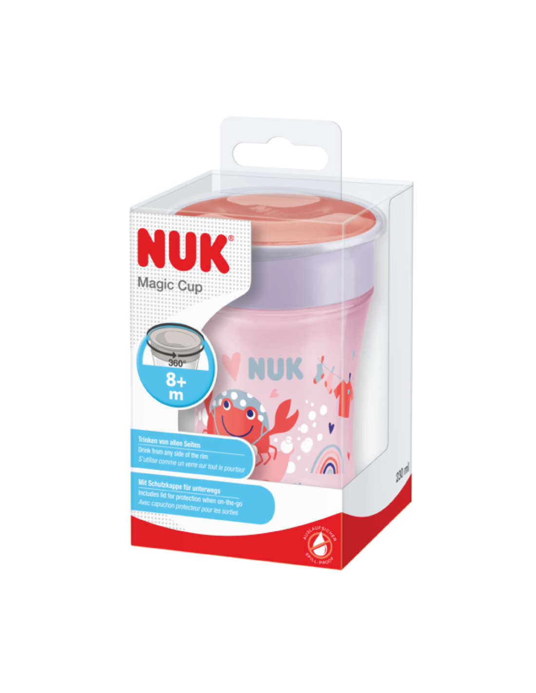 NUK Magic Cup Disney Baby 230 ml 8 Mois et + est une tasse étanche dont le rebord peut être utilisé partiellement de chaque côté. Son disque hermétique en silicone prévient les éclaboussures et les déversements.