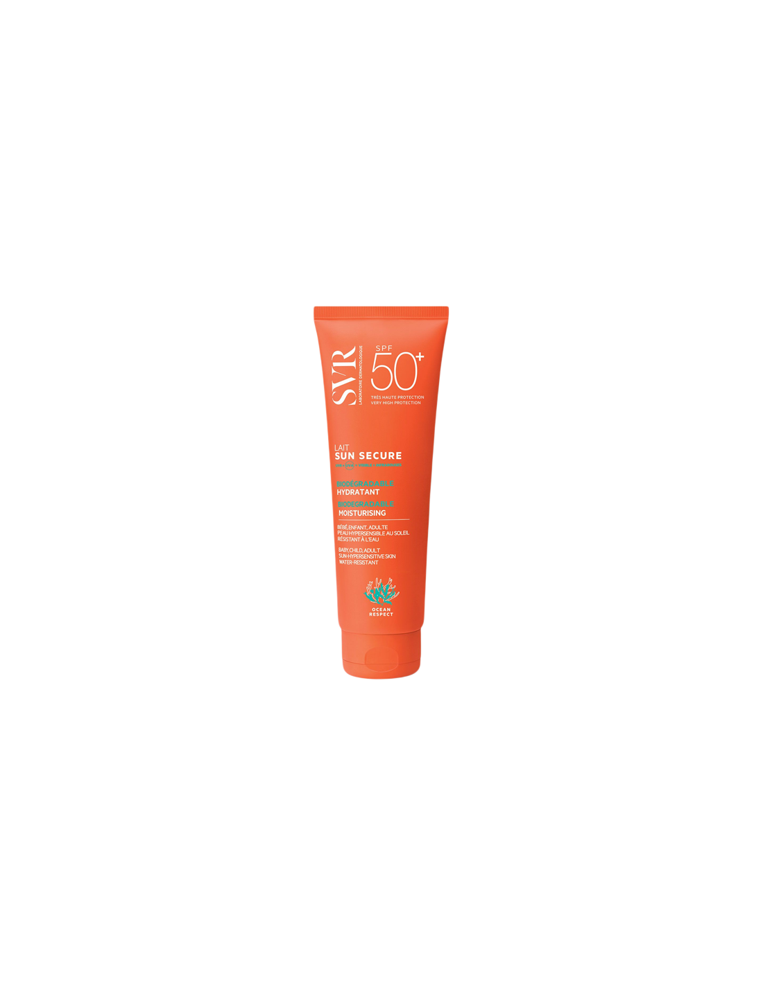 SUN SECURE Lait SPF50+ est un lait à la texture veloutée et au fini invisible qui convient à tous les types de peaux. Sa texture fond sur la peau et pénètre instantanément, la laissant parfaitement hydratée. Il résiste à l’eau et aux frottements pour une protection optimale et peut même être appliqué sur peau mouillée. Il est parfaitement adapté aux peaux hypersensibles au soleil de toute la famille : bébé, enfant, adulte.
