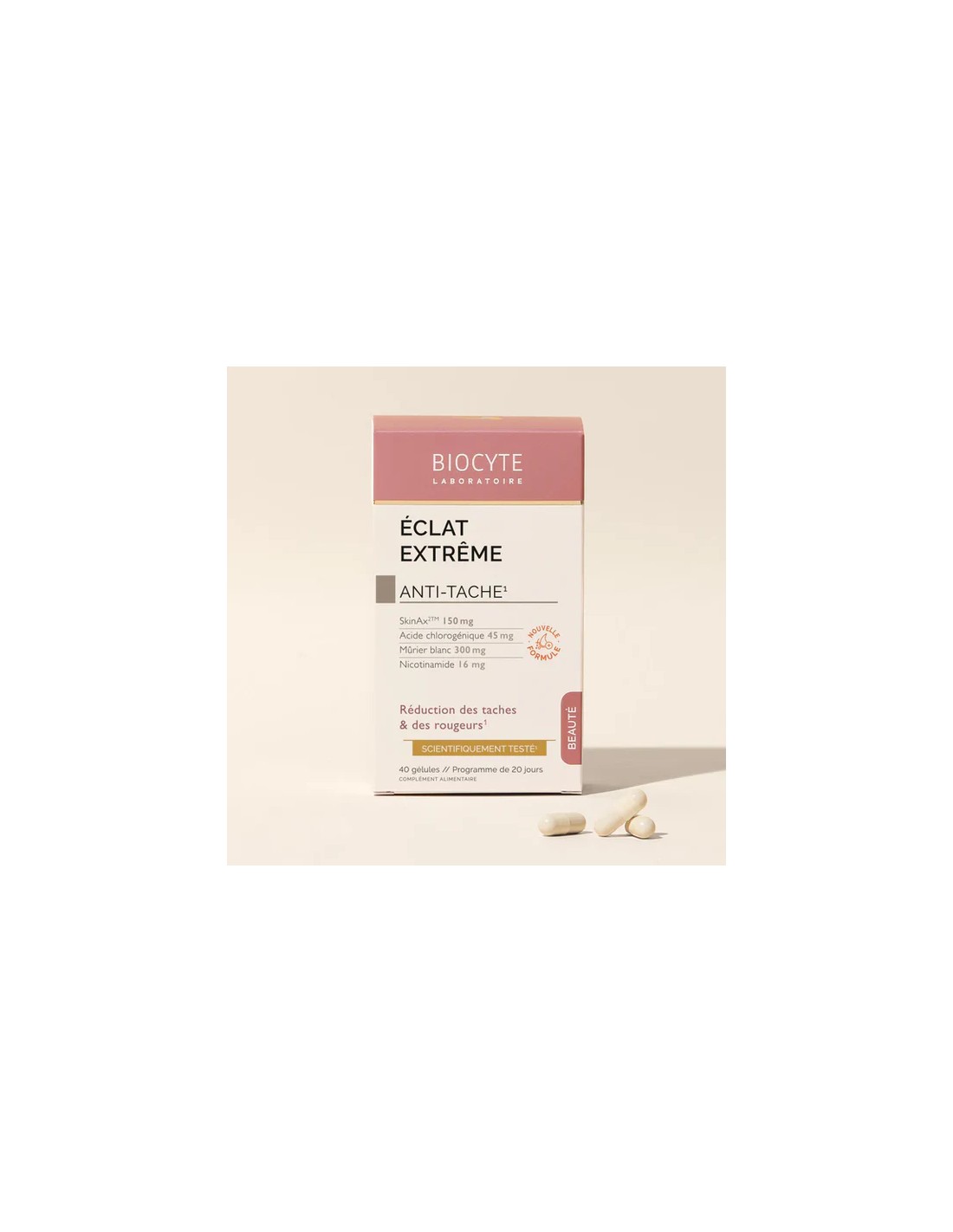 BiocyteÉclat Extrême de Biocyte est un complément alimentaire conçu pour réduire les taches brunes et les rougeurs, tout en illuminant le teint. Sa formule unique associe des actifs puissants et innovants pour une efficacité prouvée.