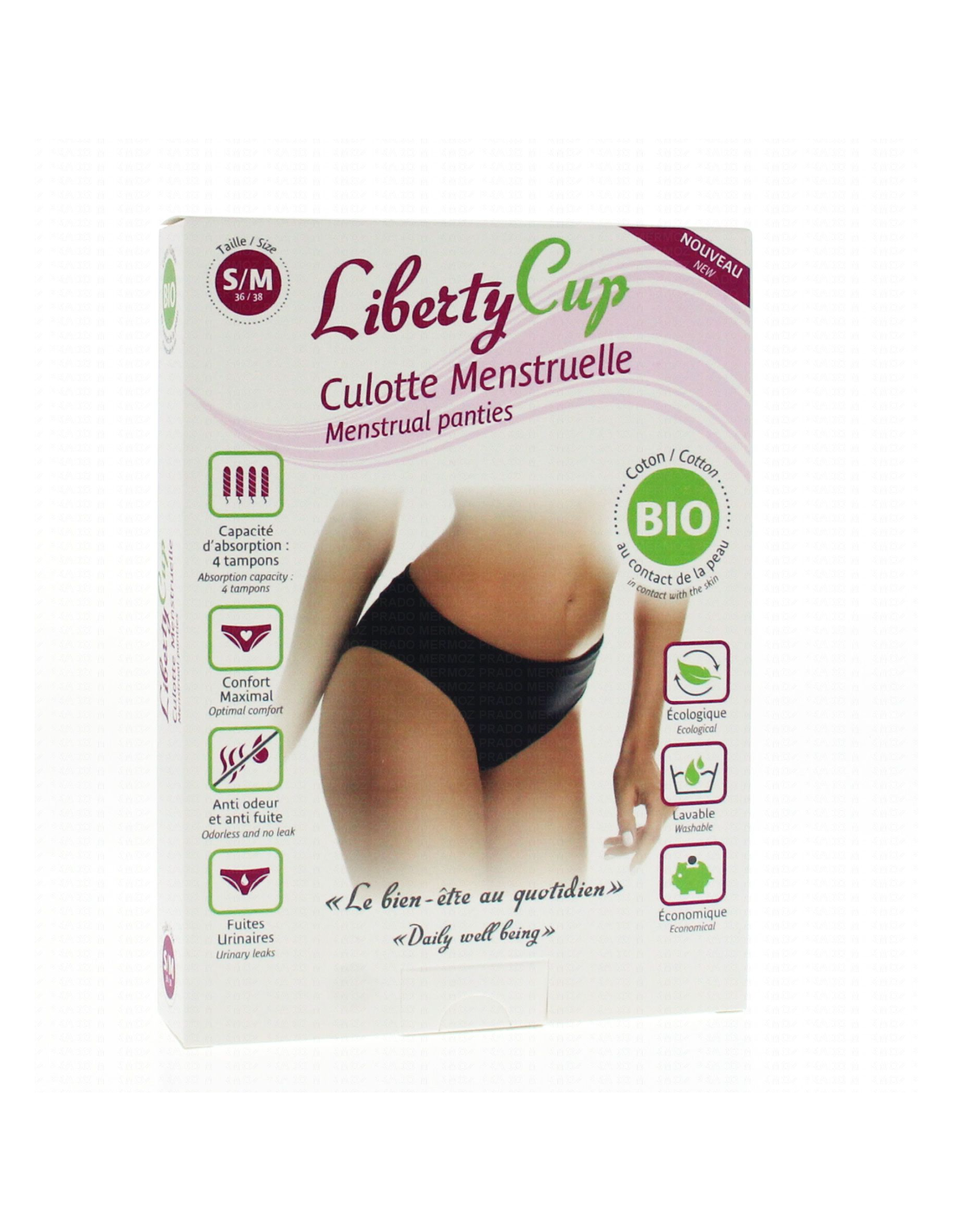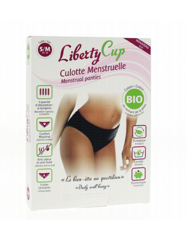 Liberty Cup Culotte Menstruelle Couleur Chair Bio - Taille : S/M est une culotte menstruelle qui vous accompagne tout au long de votre cycle menstruel. Elle peut être utilisée seule ou en complément d'une autre protection hygiénique. Dans une démarche éco-responsable la marque vous conseille d'utiliser la culotte menstruelle avec la coupe menstruelle LibertyCup. Les culottes sont écologiques, saines, ultra-absorbantes, anti odeur et anti fuite.