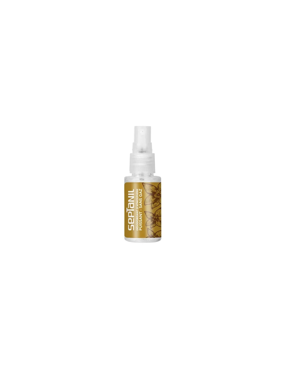 Cette désodorisant désinfectant est particulièrement recommandé pour l’assainissement de l’air et des surfaces dans les hôpitaux, cliniques, cabinets médicaux, maternités, crèches, chambres de malades, salles d’attente, écoles, bureaux, CHR, salles de sport. Parfum vanille framboise il absorbe et neutralise les mauvaises odeurs et apporte un parfun gourmand et fruits et des fleurs. cette parfun peut rester 48 h espace fermé, 3 jours sur les vêtements, 5 jours dans la voiture. Composition Ethanol 95°, eau distillé, 5-chloro-2-(2.4 dichlorophenoxy) phenol, dissodium EDTA, fragrance.