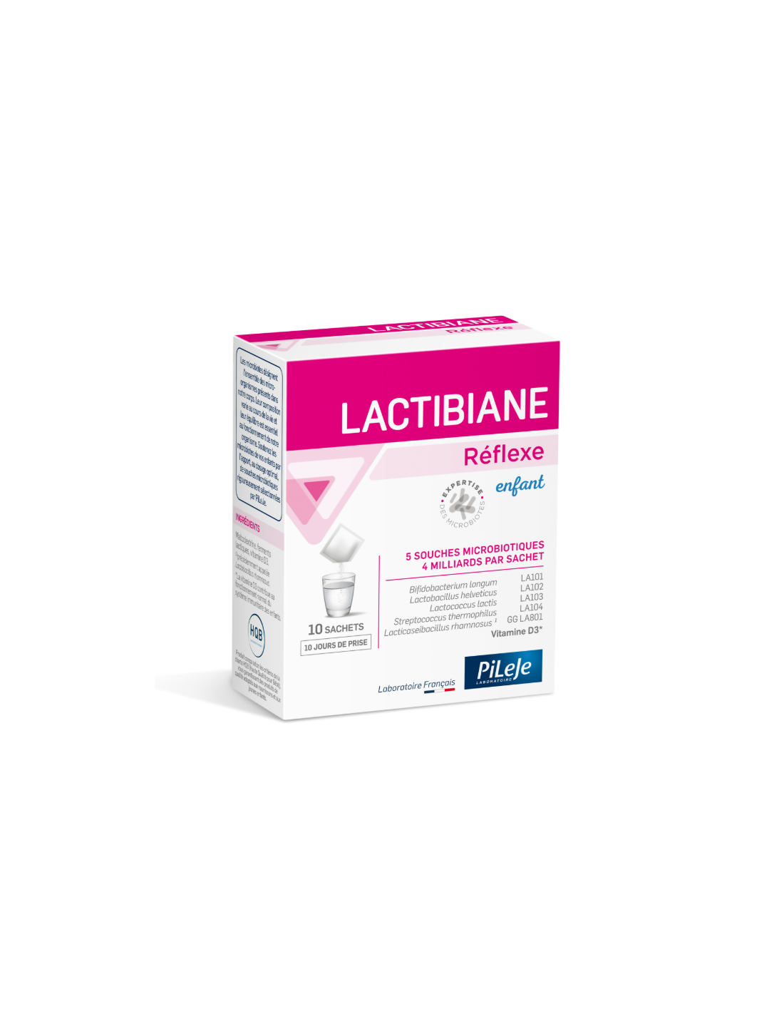 Il n'y a plus d'articles dans votre panierLactibiane ENFANT contient de la vitamine D, qui est impliquée dans la croissance et le développement normals des os chez l’enfant, ainsi que 5 cultures bactériennes microbiotiques :
