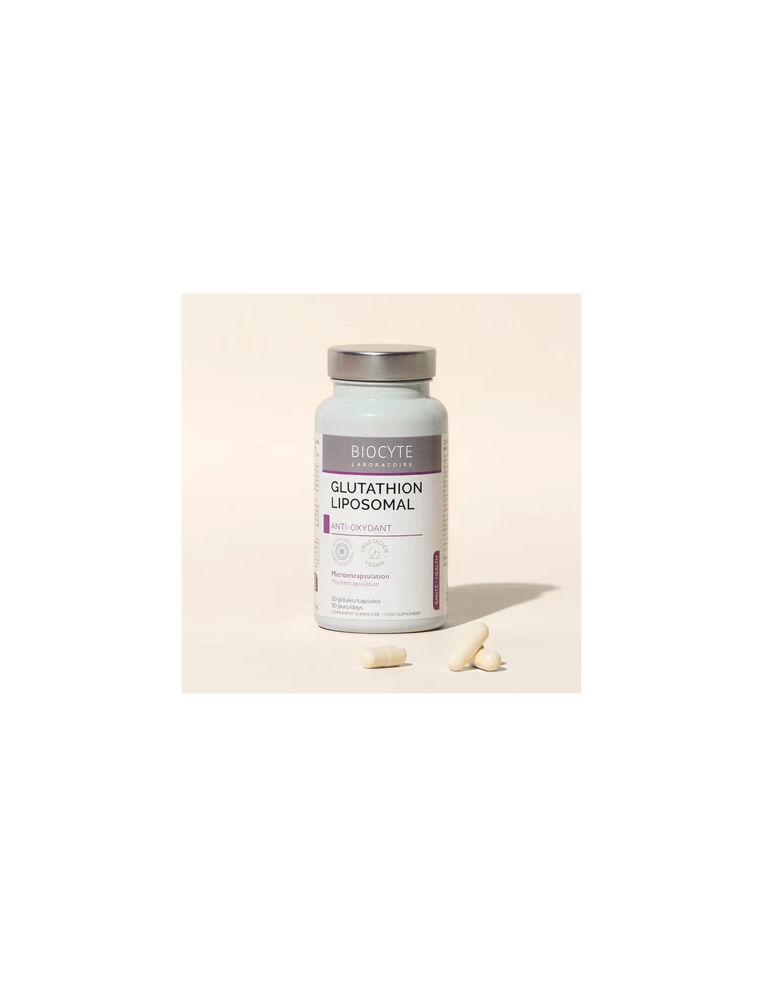 Le Glutathion Liposomal de Biocyte est un complément alimentaire innovant conçu pour protéger les cellules contre le stress oxydatif. Le glutathion et la vitamine C agissent ensemble pour renforcer la protection antioxydante de l'organisme. La vitamine C aide à réactiver le glutathion lorsqu'il a été utilisé, lui permettant d’assurer une défense cellulaire optimale contre les radicaux libres. Grâce à la technologie liposomale, ces actifs bénéficient d'une haute biodisponibilité et d'une meilleure assimilation par l'organisme.