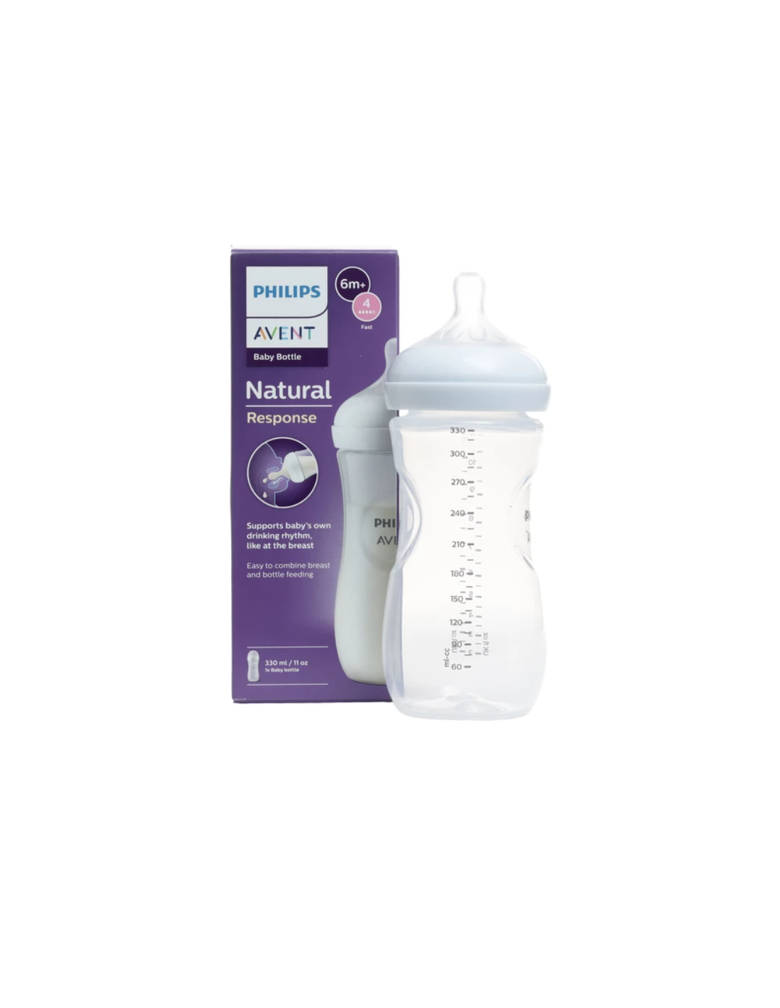 Le Biberon Natural Response anti coliques Avent est un biberon conçu pour offrir à votre bébé la sensation d'une tétée naturelle comme au sein maternel pour permettre un allaitement mixte sans difficultés. Avec sa tétine à débit rapide 4, il convient dès l'âge de 6 mois.