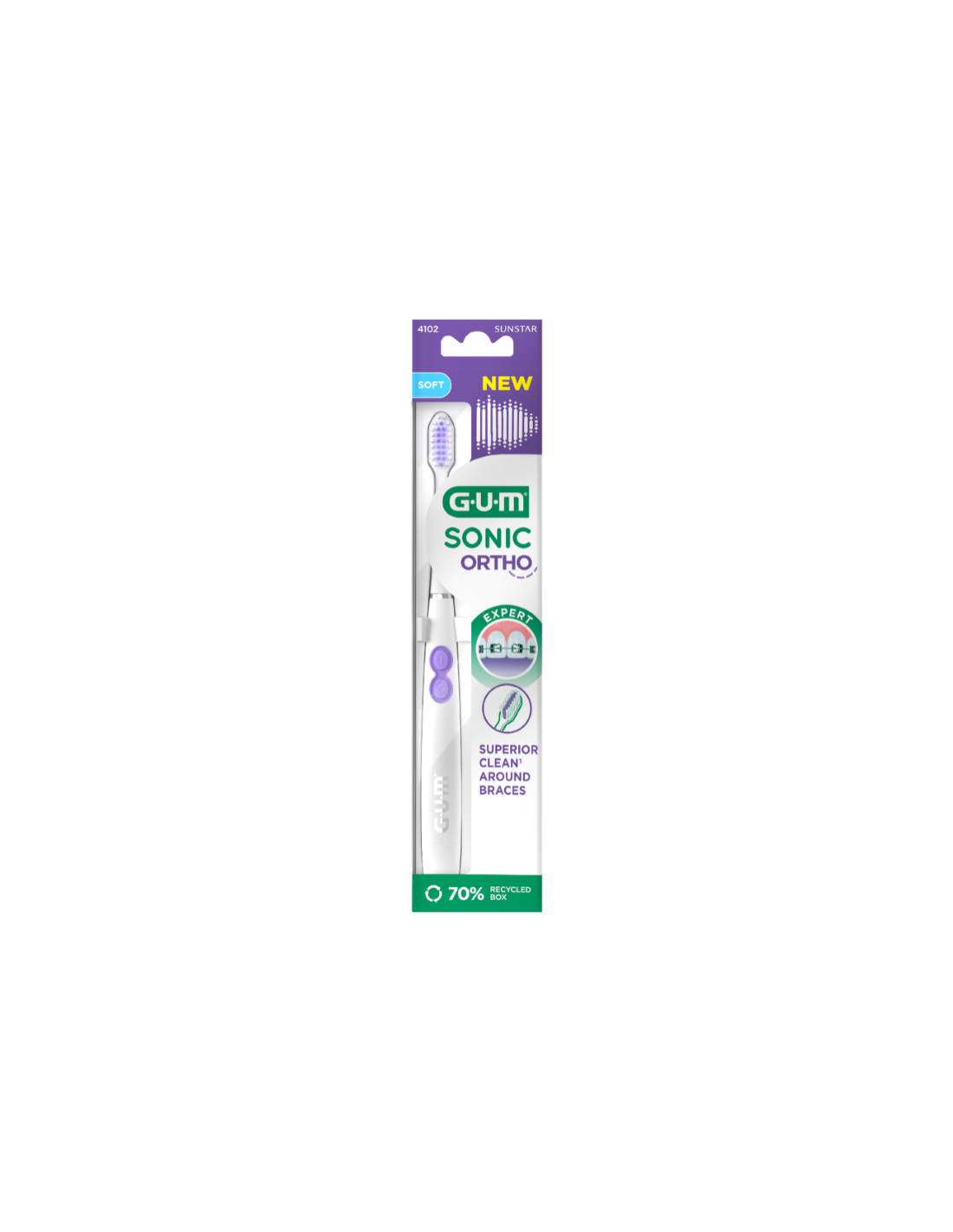 La brosse à dents GUM SONIC ORTHO est spécialement conçue pour les patients porteurs d'appareils orthodontiques, et procure un nettoyage 45% plus efficace comparé à une brosse à dents manuelle ortho.