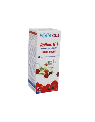 PEDIAKIDS APITOU N°1 SANS SUCRE 150ML est un sirop spécialement formulé pour soulager la toux grasse et faciliter l'expectoration chez les enfants. Sa formule douce est adaptée aux enfants et est sans sucre.