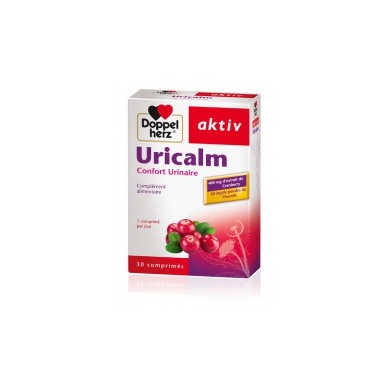 Les comprimés Aktiv-Uricalm doppel herz de marque allemande, uricalm® est une combinaison d'extraits de cranberry et de poudre de pissenlit ,qui sont reconnues pour leur efficacité contre les infections urinaires récurrents et leurs propriétes anti-oxydantes qui renforcent les défenses cellulaires naturelles.